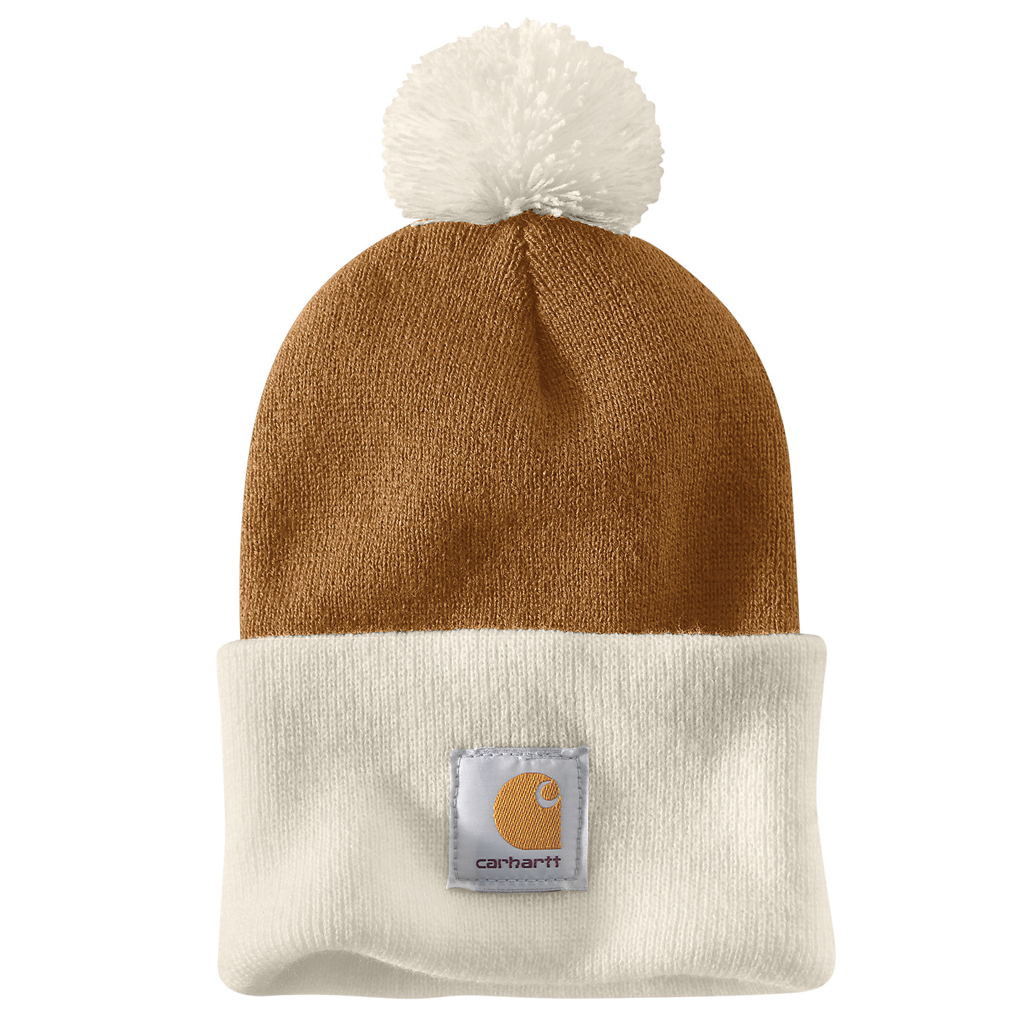 Den efterlängtade mössan är här – och den sticker ut! Ribbstickad i 100 % akryl för värme och komfort, toppad med en toffs som ger en humoristisk touch till din vinterstil. Den välkända Carhartt-logotypen framtill gör att mössan fortfarande behåller sitt råa workwear-uttryck – men med ett leende på toppen.